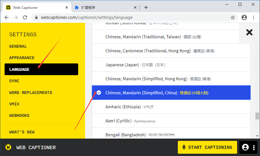 点击右下角 start captioning 浏览器会访问电脑麦克风 确保电脑麦克风正常使用 并允许访问
